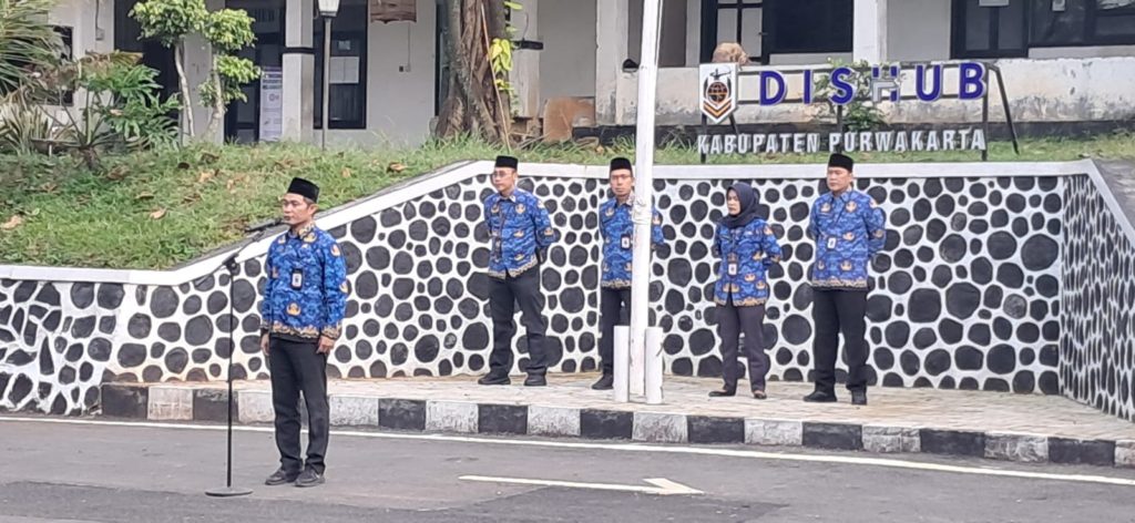 Senin 17 Maret 2025 apel pagi dihalaman kantor Dinas Perhubungan Kabupaten Purwakarta yang dipimpin Kepala Bidang Pengawasan dan Keselamatan (WASEL) Dinas Perhubungan Kabupaten Purwakarta selaku pembina apel.