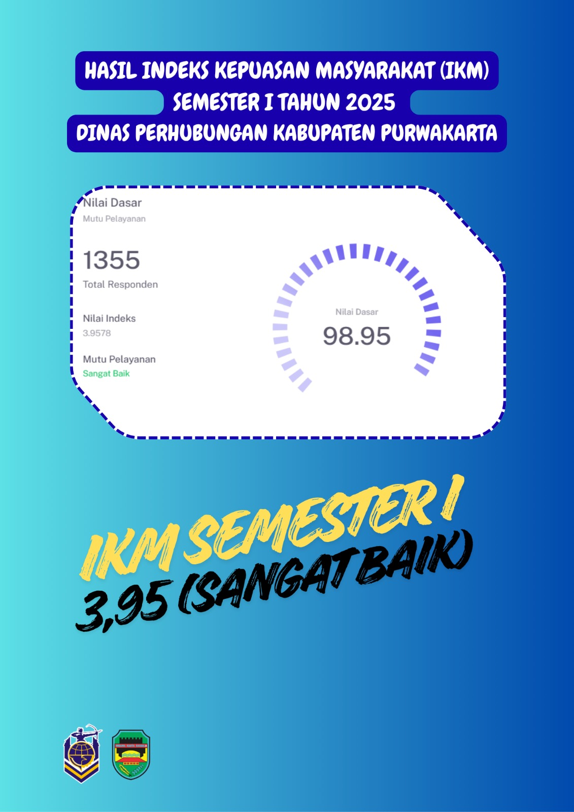 Dinas Perhubungan Purwakarta melakukan Survey Indeks Kepuasan Masyarakat yang dilaksanakan pada periode Semester I 2025. Berdasarkan hasil survei yang melibatkan 1.355 responden, diperoleh nilai indeks sebesar 3,95 atau setara dengan 98,95 pada skala 100, yang masuk dalam kategori “Sangat Baik”.