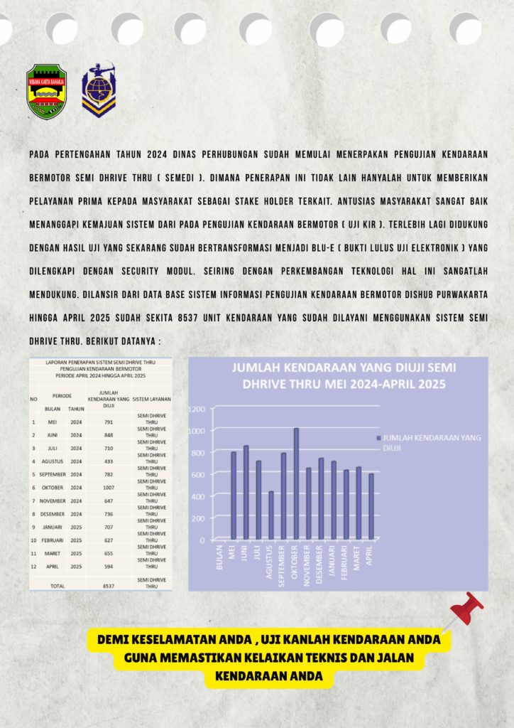 For Your Information (FYI) Pengujian Kendaraan Bermotor Melaksanakan Inovasi Pelayanan Semi Drive Thru (SEMEDI)